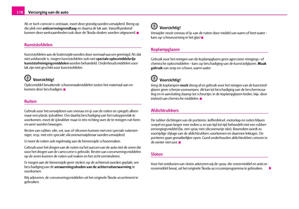 kunnen deze werkzaamheden ook door de Škoda-dealers worden uitgevoerd.Verwijder nooit sneeuw of ijs van de ruiten door middel van warm of heet water -