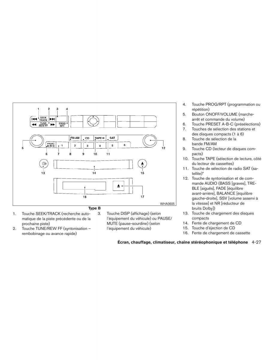 1. Touche SEEK/TRACK(recherche auto-3.Touche DISP (affichage) (selon13. Touche de chargement des disques