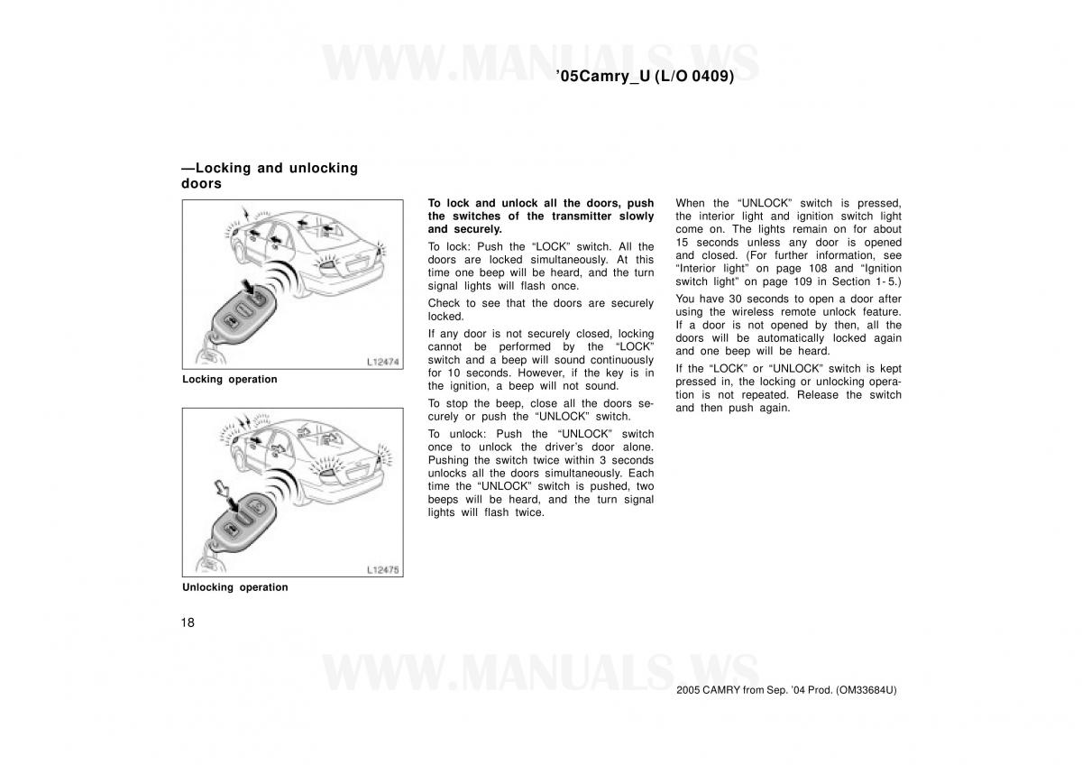 2005 CAMRY from Sep. ’04 Prod. (OM33684U)