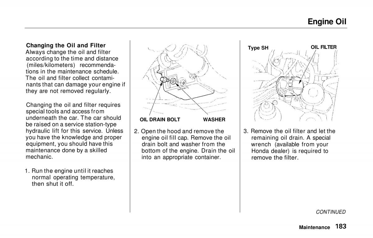 maintenance done by a skilled bottom of the engine. Drain the oil Honda dealer) is required to