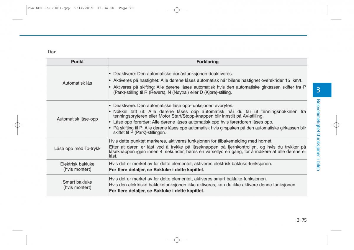 owners manual Hyundai Tucson - year of production: 2015 - Hyundai Tucson III 3 bruksanvisningen NO
