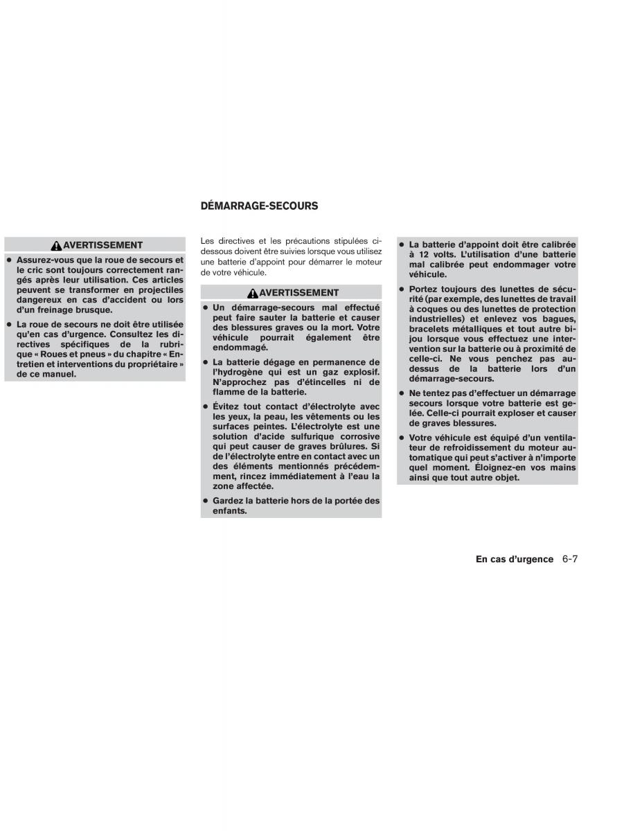 AVERTISSEMENT Les directives et les précautions stipulées ci-● La batterie d’appoint doit être calibrée
