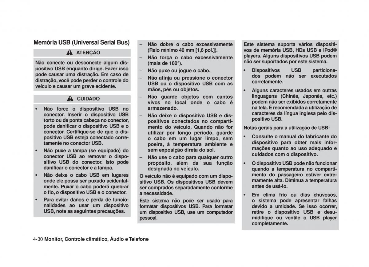 pode danificar o dispositivo USB e o mento do veículo. Quando não for
