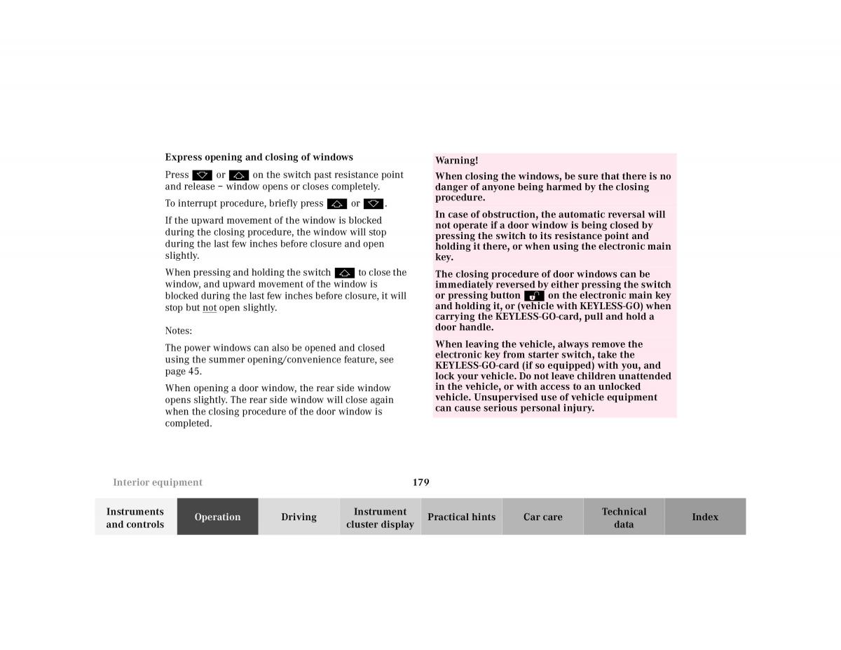 and release – window opens or closes completely. danger of anyone being harmed by the closing
