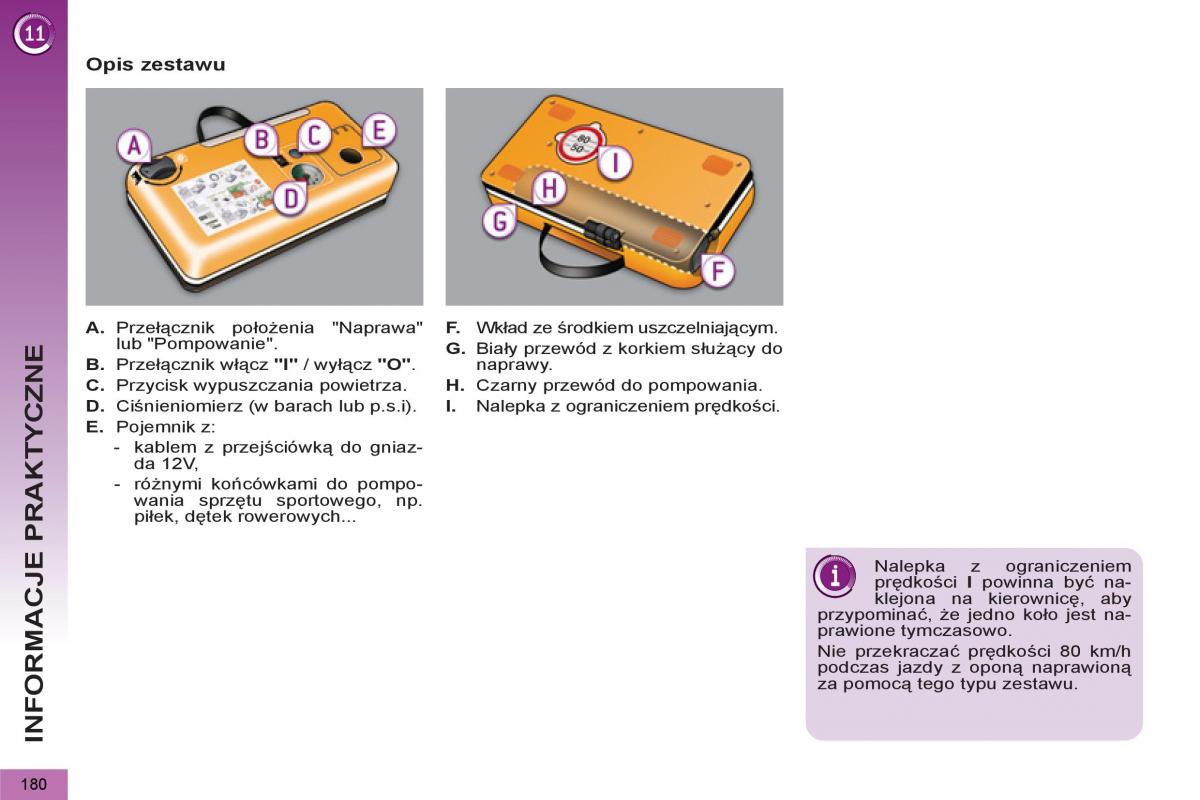 D. CiĞnieniomierz (w barach lub p.s.i). I. Nalepka z ograniczeniem prĊdkoĞci.