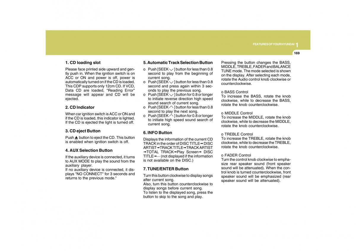 If the CD is ejected the light is turned off.current song. clockwise, while to decrease the MIDDLE,