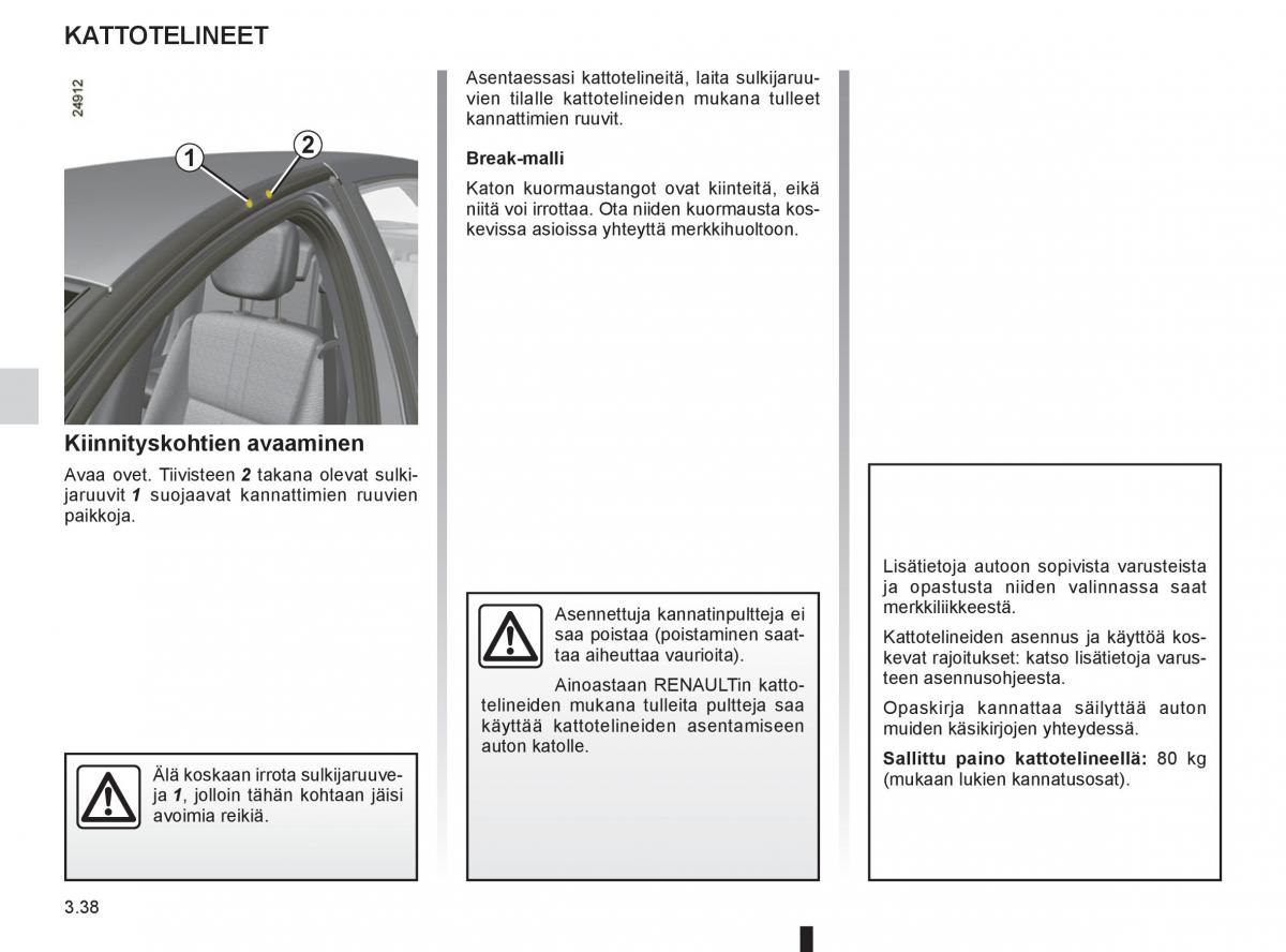 Ainoastaan RENAULTin katto- teen asennusohjeesta.