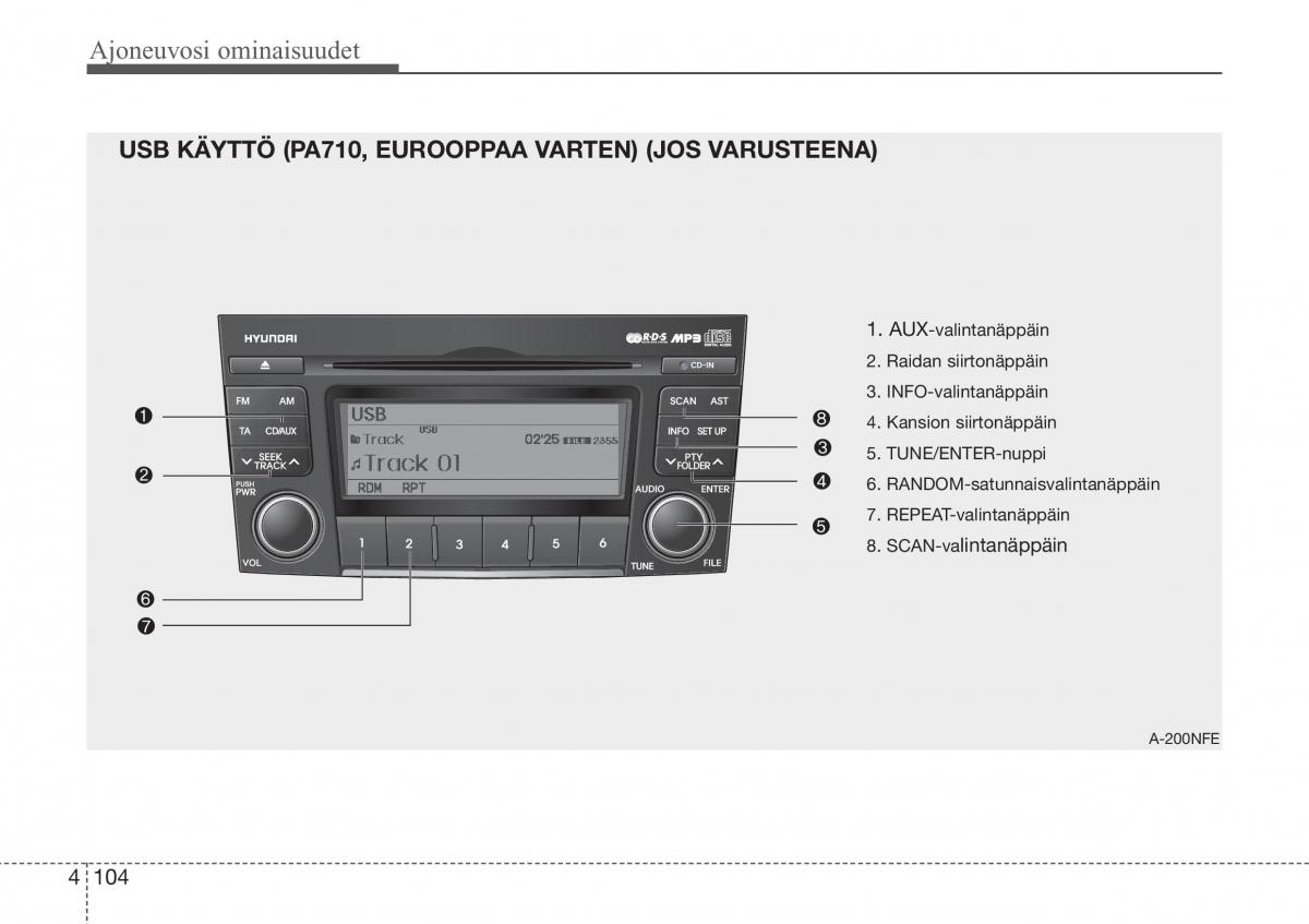 USB KÄYTTÖ (PA710, EUROOPPAA VARTEN) (JOS VARUSTEENA)
