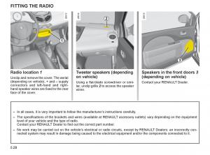 – No work may be carried out on the vehicle’s electrical or radio circuits, except by RENAULT Dealers: an incorrectly con-