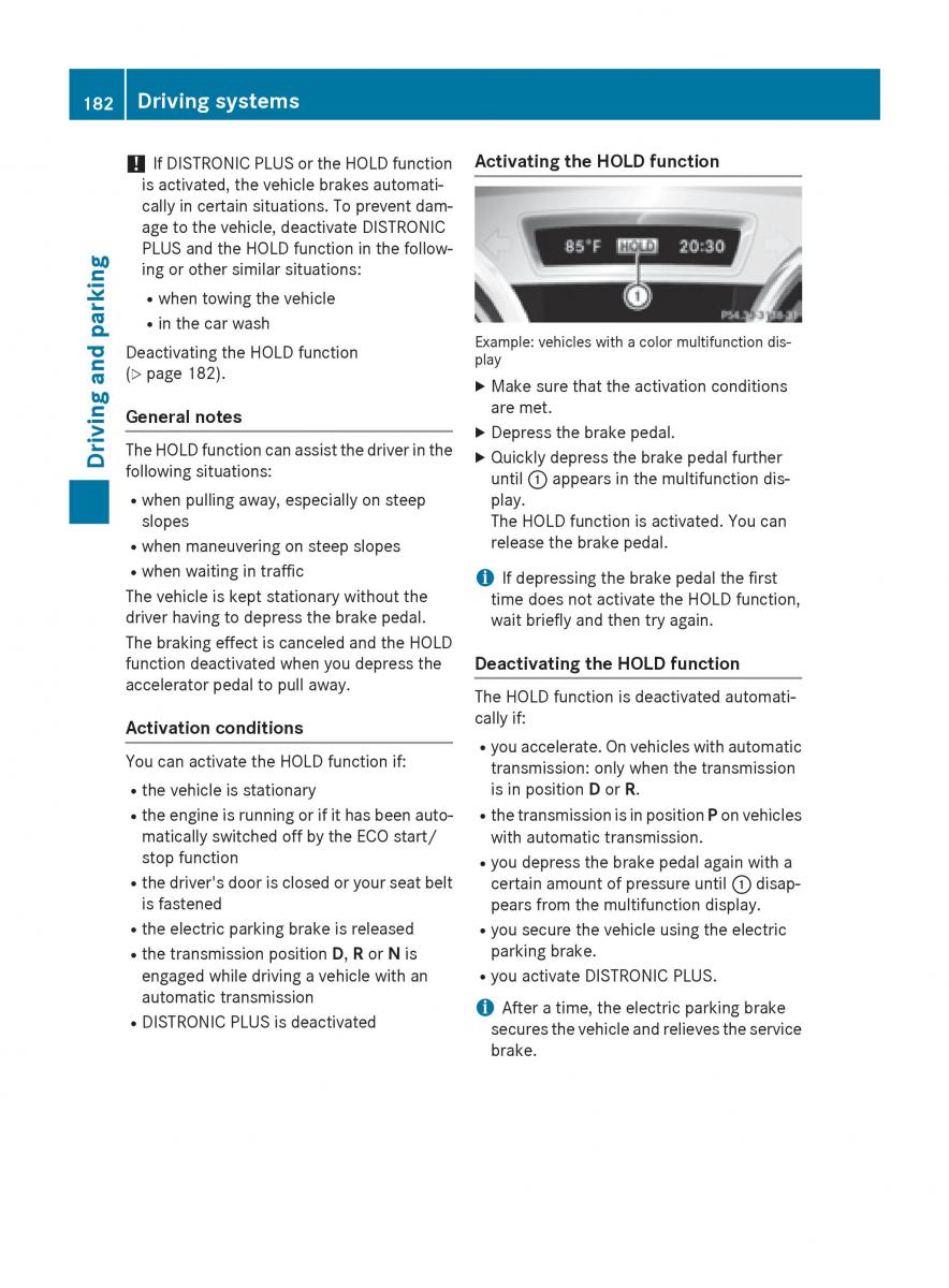 If DISTRONICPLUSortheHOLDfunctionActivating the HOLD function