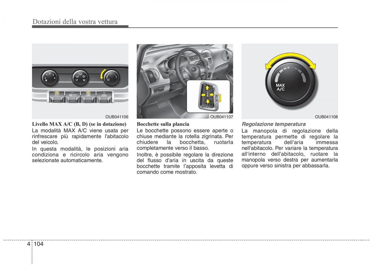 Livello MAX A/C (B, D) (se in dotazione)Bocchette sulla plancia Regolazione temperatura