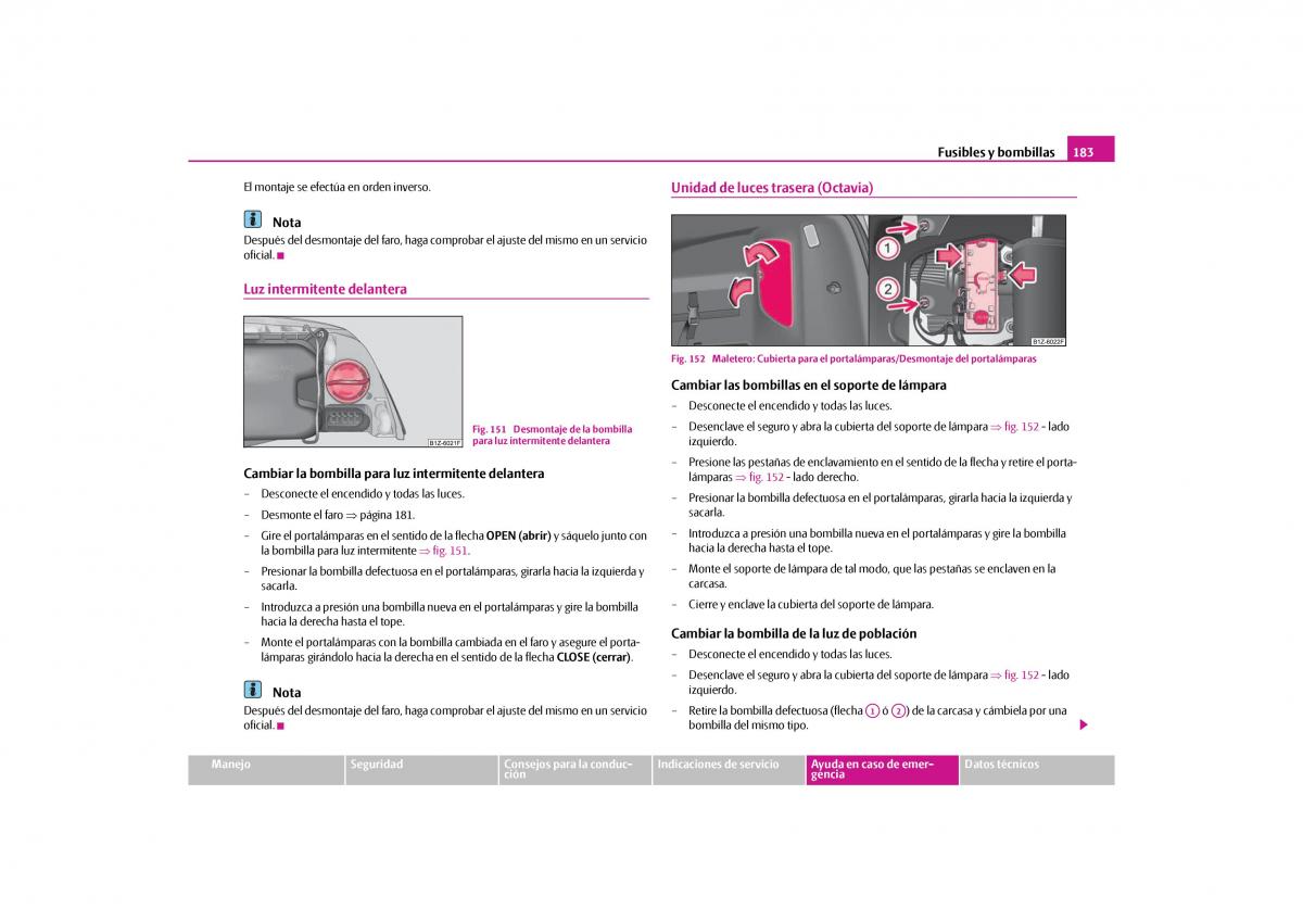 owners manual Skoda Octavia - year of production: 2004, 2005, 2006, 2007, 2008, 2009, 2010, 2011, 2012, 2013 - Skoda Octavia II 2 manual del propietario ES