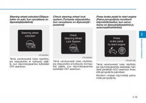 Steering wheel unlocked (Ohjaus-Check steering wheel lock Press brake pedal to start engine