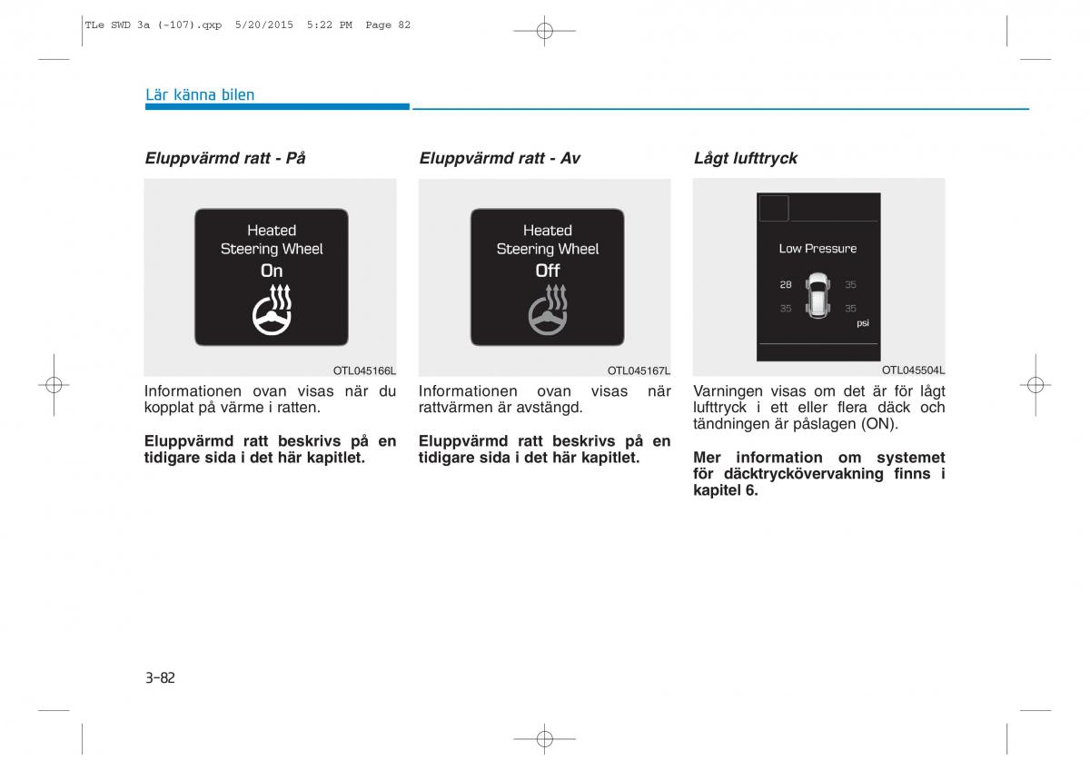kopplat på värme i ratten. rattvärmen är avstängd. lufttryck i ett eller flera däck och