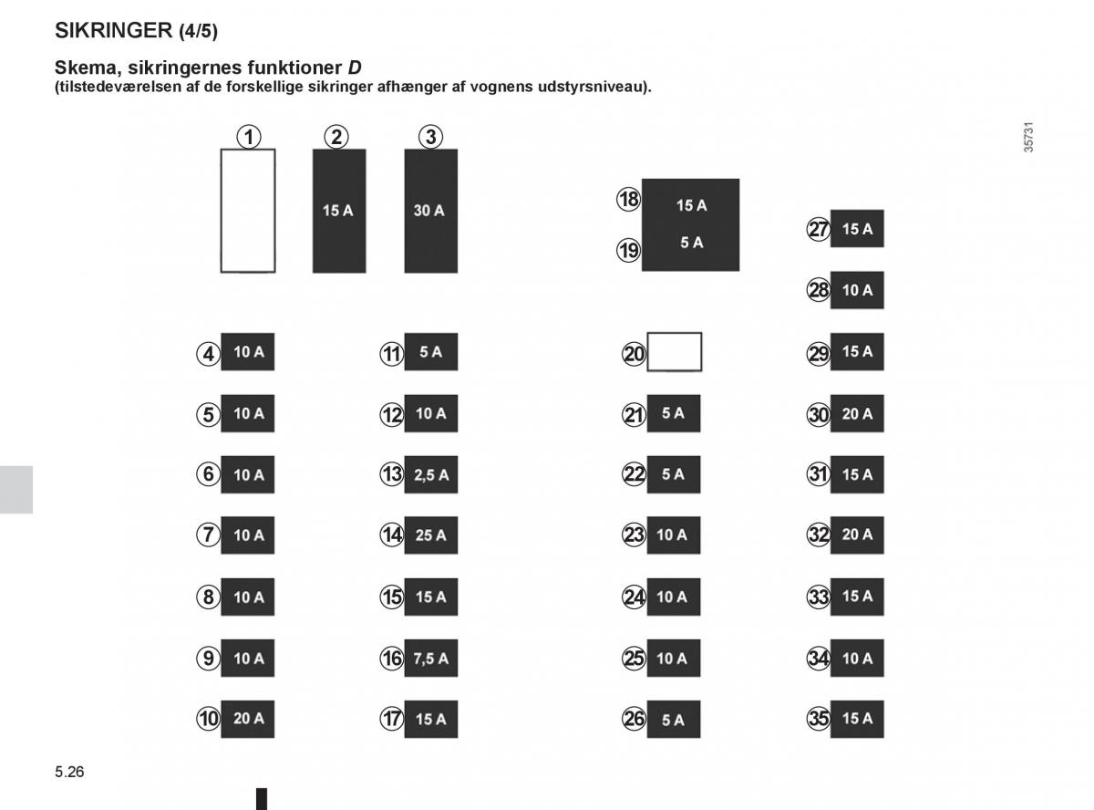 (tilstedeværelsen af de forskellige sikringer afhænger af vognens udstyrsniveau).