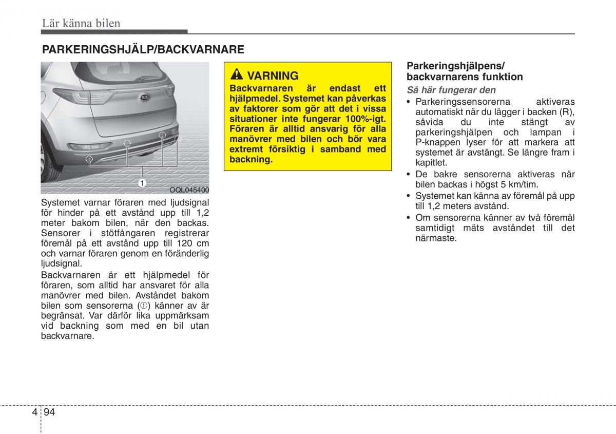 • De bakre sensorerna aktiveras när