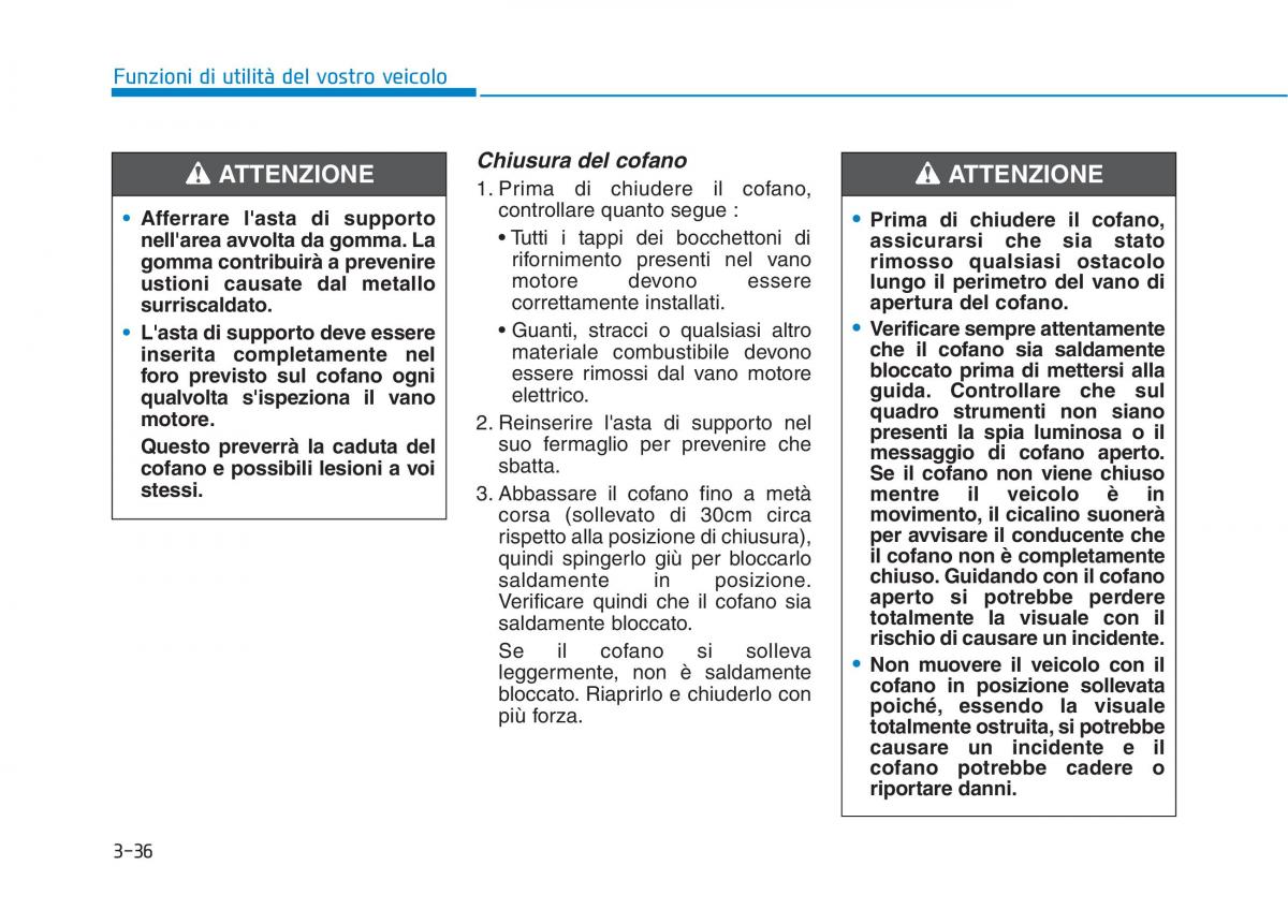 ATTENZIONE Chiusura del cofano ATTENZIONE