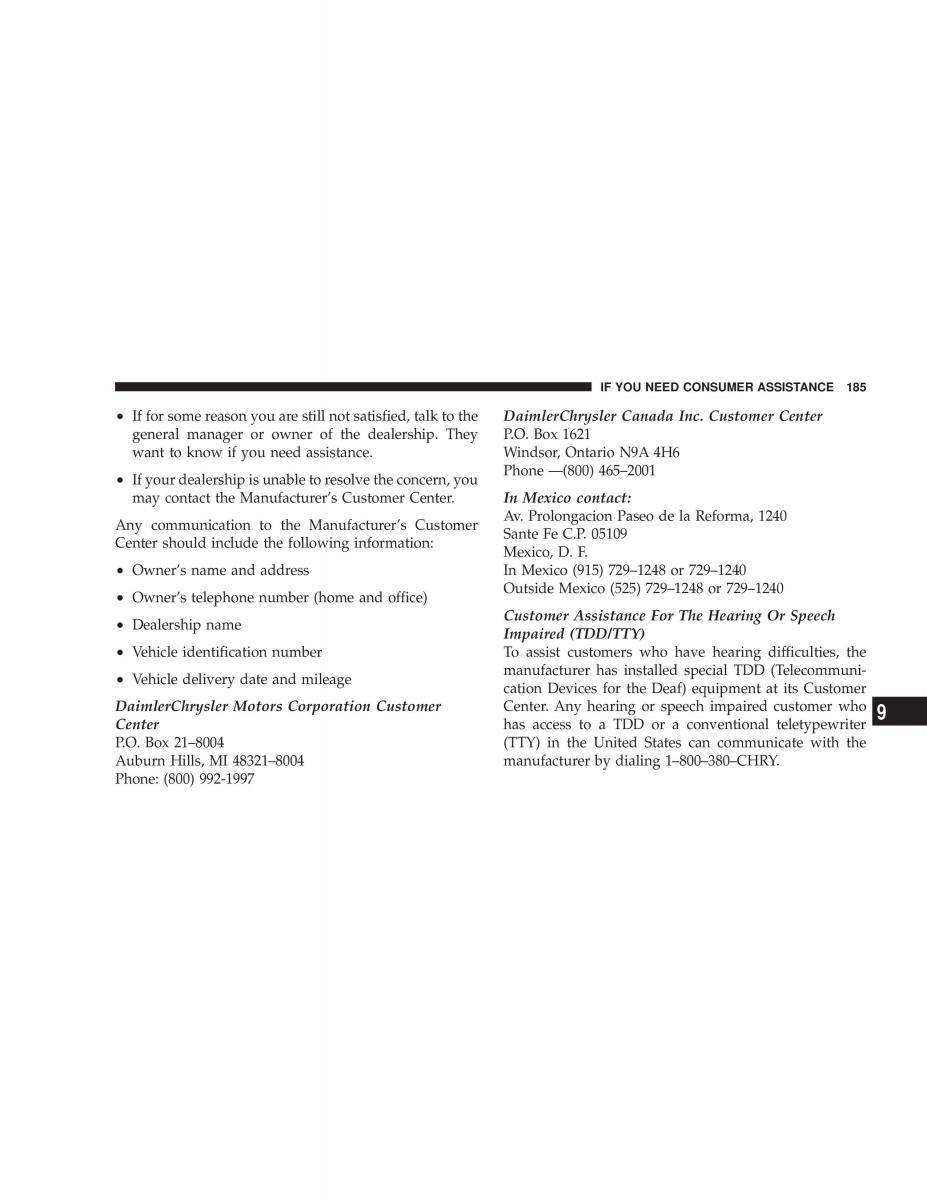 DaimlerChrysler Motors Corporation CustomerCenter. Any hearing or speech impaired customer who 9