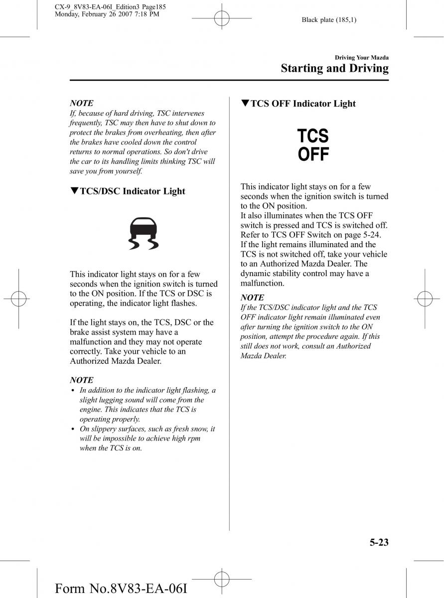 operating, the indicator light flashes. If the TCS/DSC indicator light and the TCS