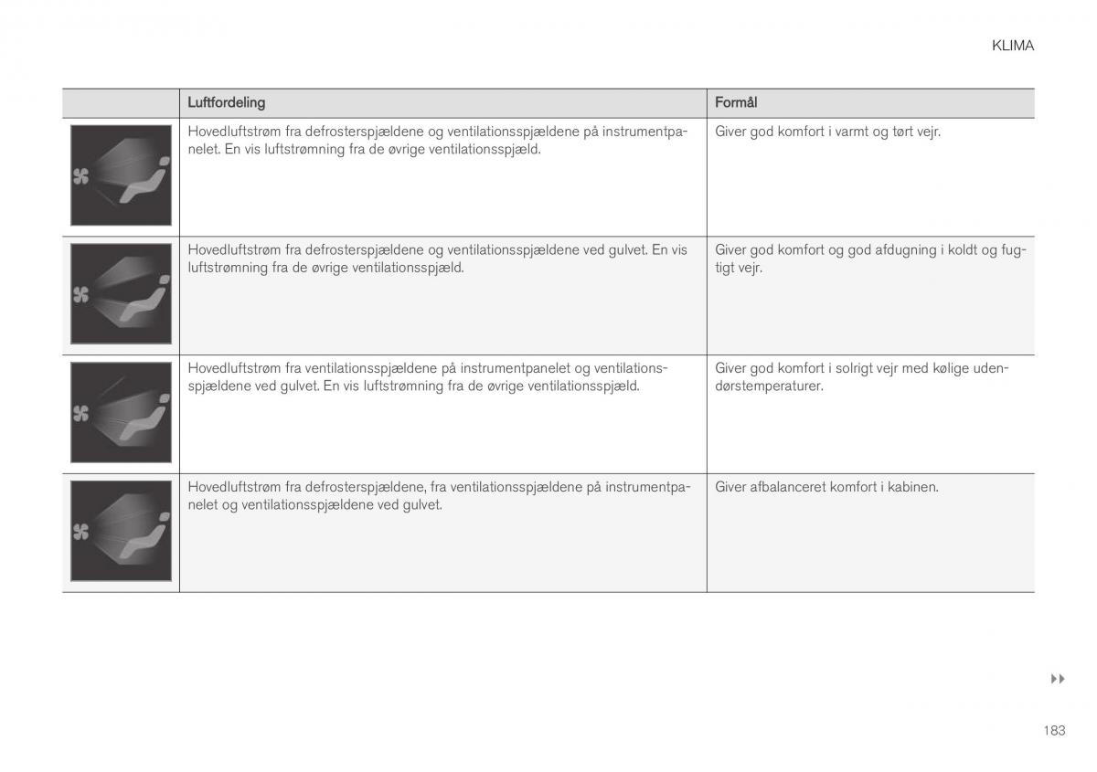 Hovedluftstrøm fra defrosterspjældene, fra ventilationsspjældene på instrumentpa-Giver afbalanceret komfort i kabinen.