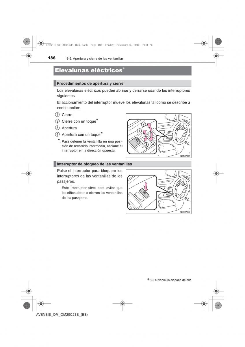 AVENSIS_OM_OM20C23S_(ES).book Page 186 Friday, February 6, 2015 7:44 PM