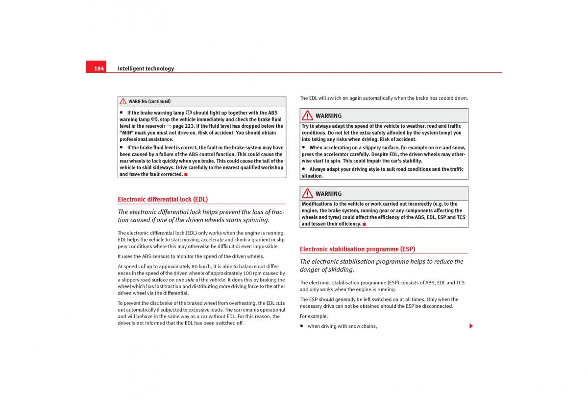 WARNING (continued) The EDL will switch on again automatically when the brake has cooled down.