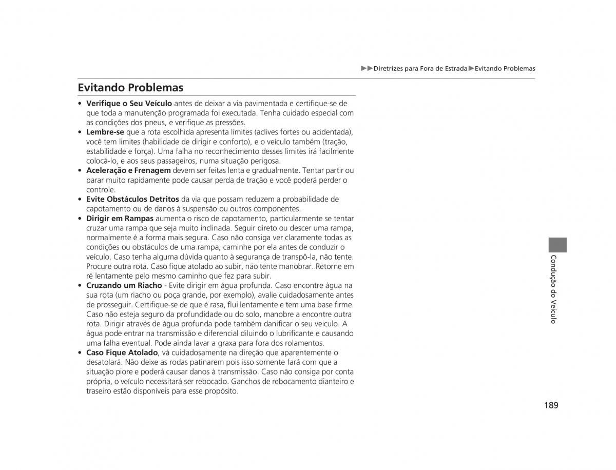 sua rota (um riacho ou poça grande, por exemplo), avalie cuidadosamente antes Veíc