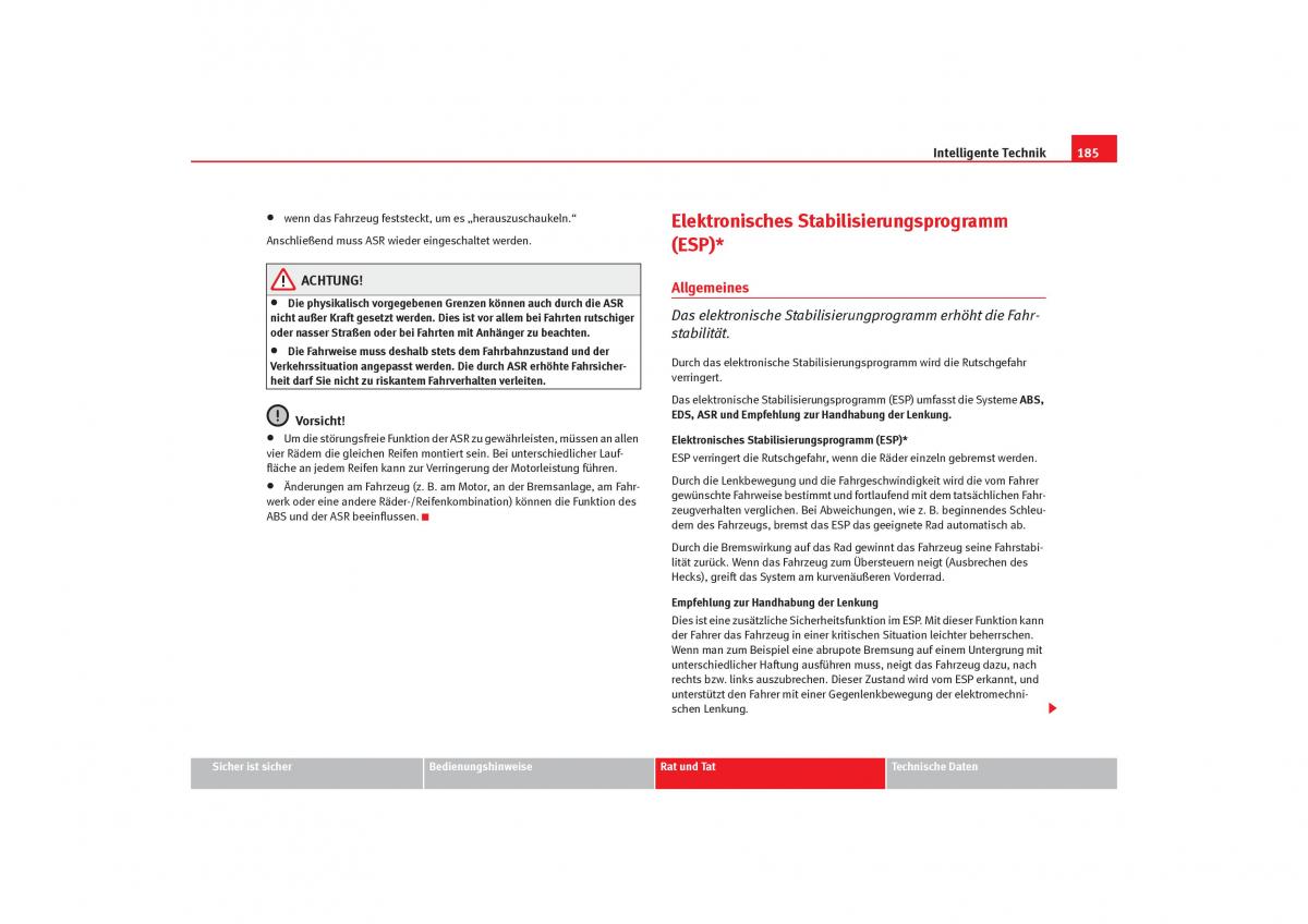 vier Rädern die gleichen Reifen montiert sein. Bei unterschiedlicher Lauf-ESP verringert die Rutschgefahr, wenn die Räder einzeln gebremst werden.