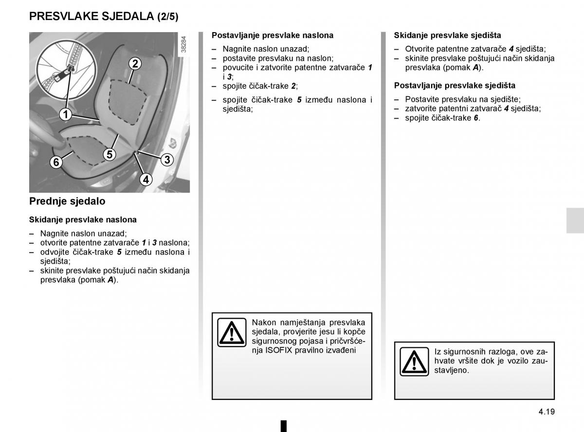 Postavljanje presvlake naslonaSkidanje presvlake sjedišta