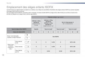 Conformément à la réglementation européenne, ce tableau vous indique les possibilités d'installation des sièges enfants ISOFIX aux places équipées