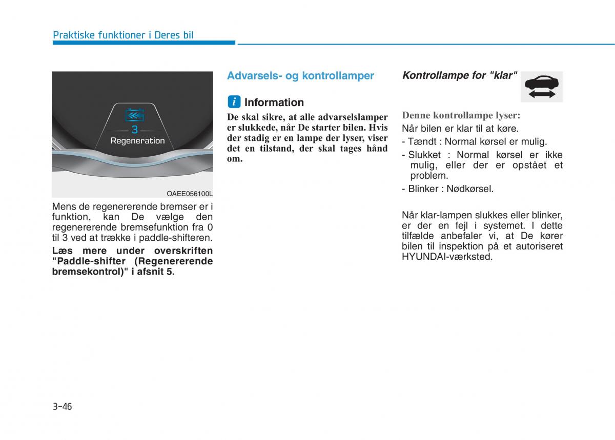 owners manual Hyundai Ioniq - year of production: 2016 - Hyundai Ioniq Electric Bilens instruktionsbog DK