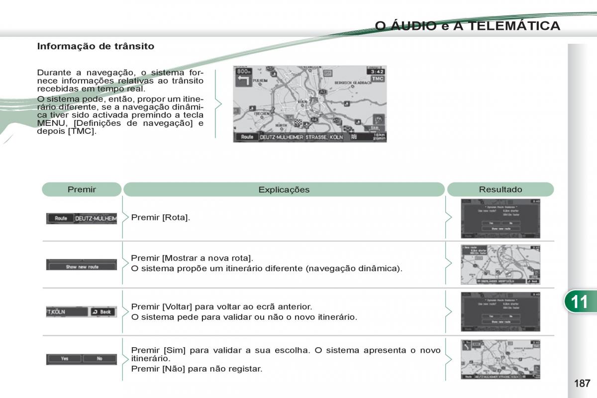 O sistema propõe um itinerário diferente (navegação dinâmica).