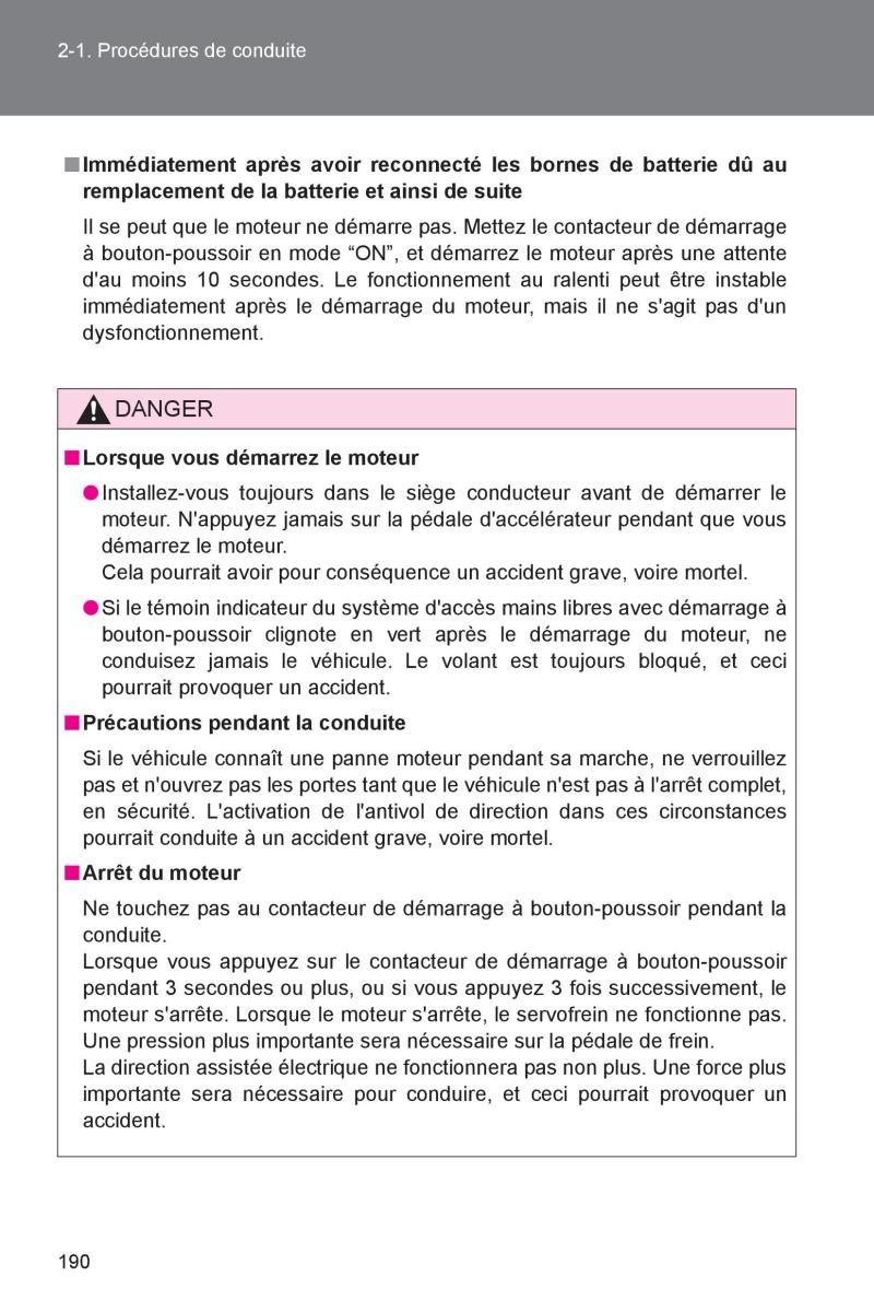 2-1. Procédures de conduite