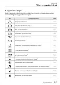 A figyelmeztet/visszajelz lámpák a megjelölt területeken gyulladnak ki