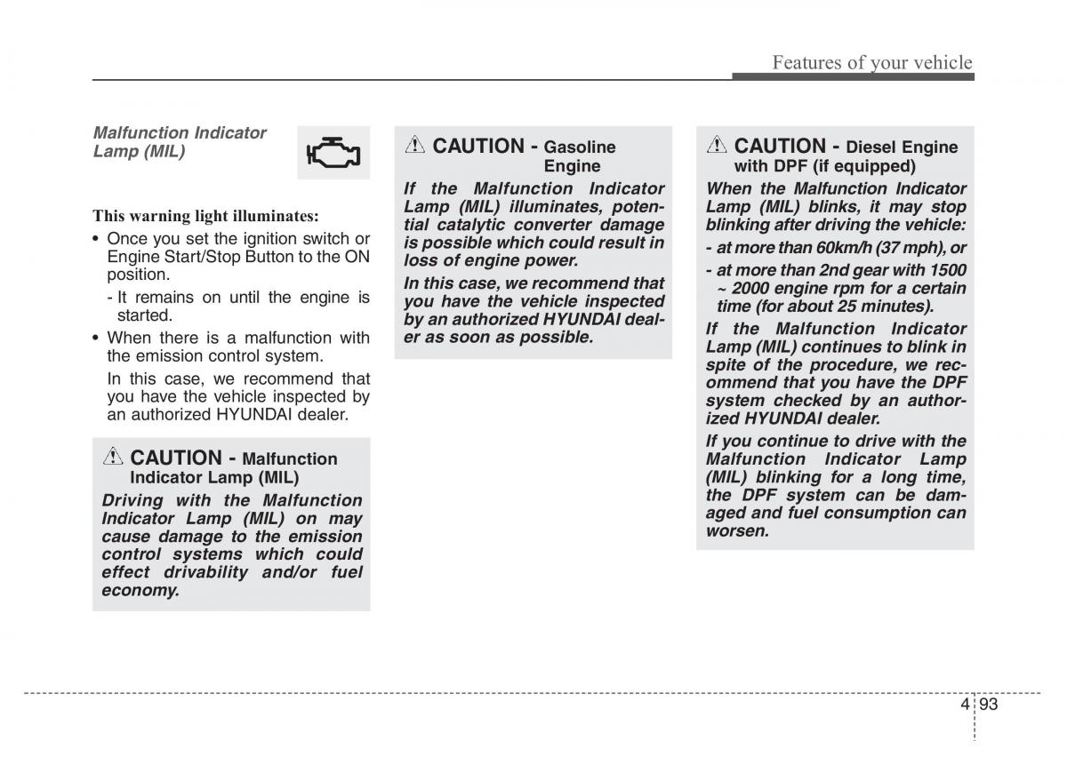 Malfunction Indicator CAUTION - Gasoline CAUTION - Diesel Engine