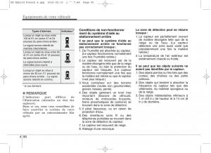 Types d’alarmes Indicateur*Conditions de non-fonctionne- La zone de détection peut se réduire