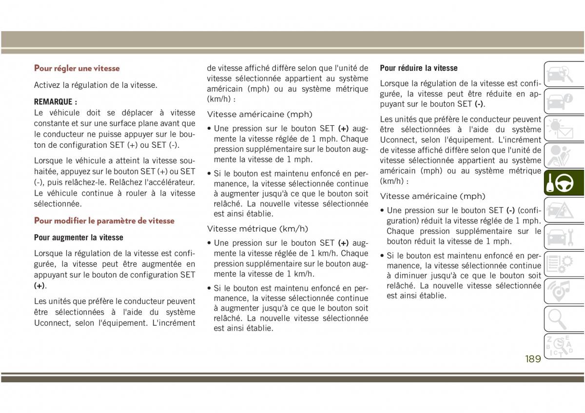 le conducteur ne puisse appuyer sur le bou-mente la vitesse réglée de 1 mph. ChaqueUconnect, selon l'équipement. L'incrément