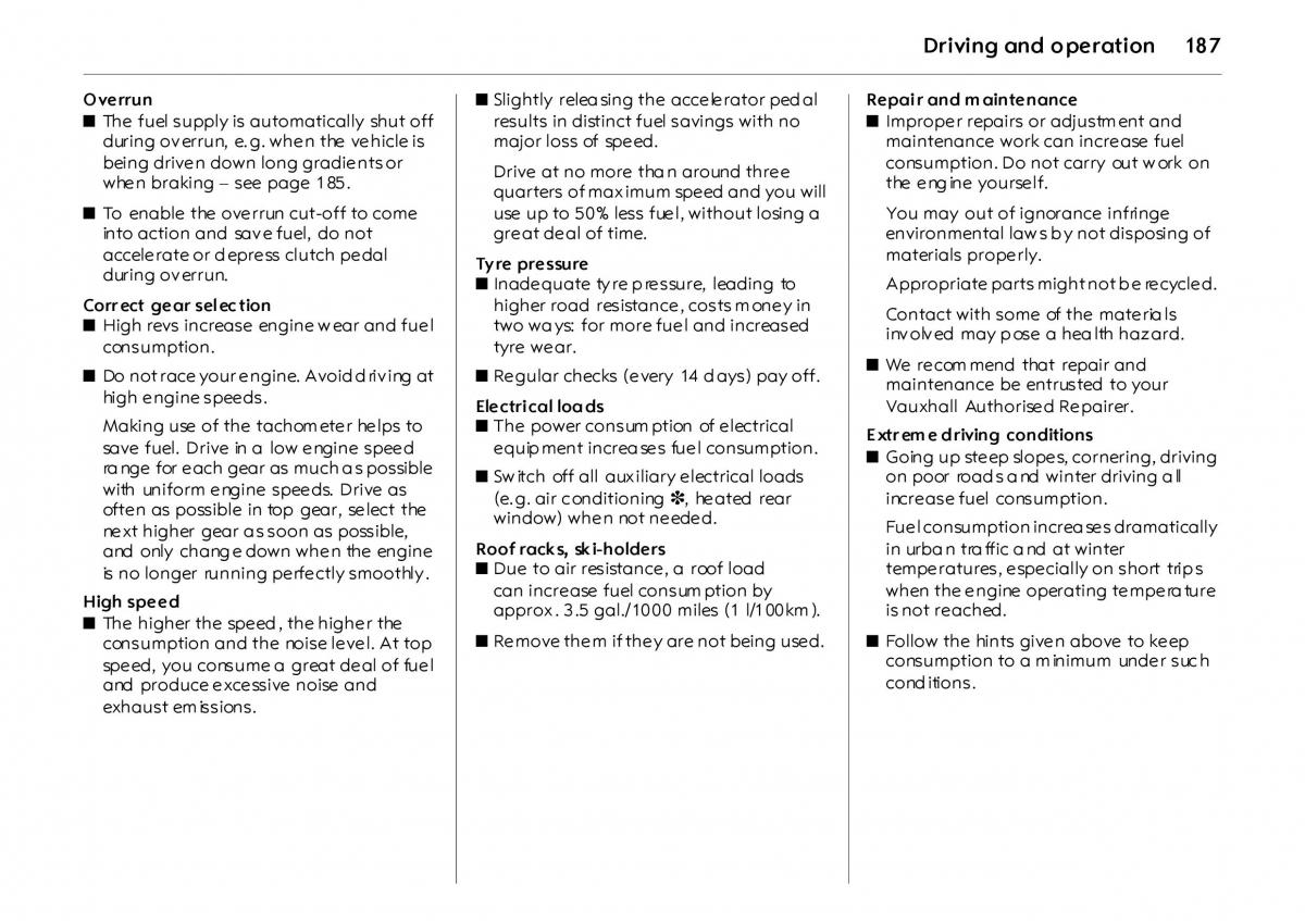 range for each gear as much as possible zSwitch off all auxiliary electrical loads on poor roads and winter driving all