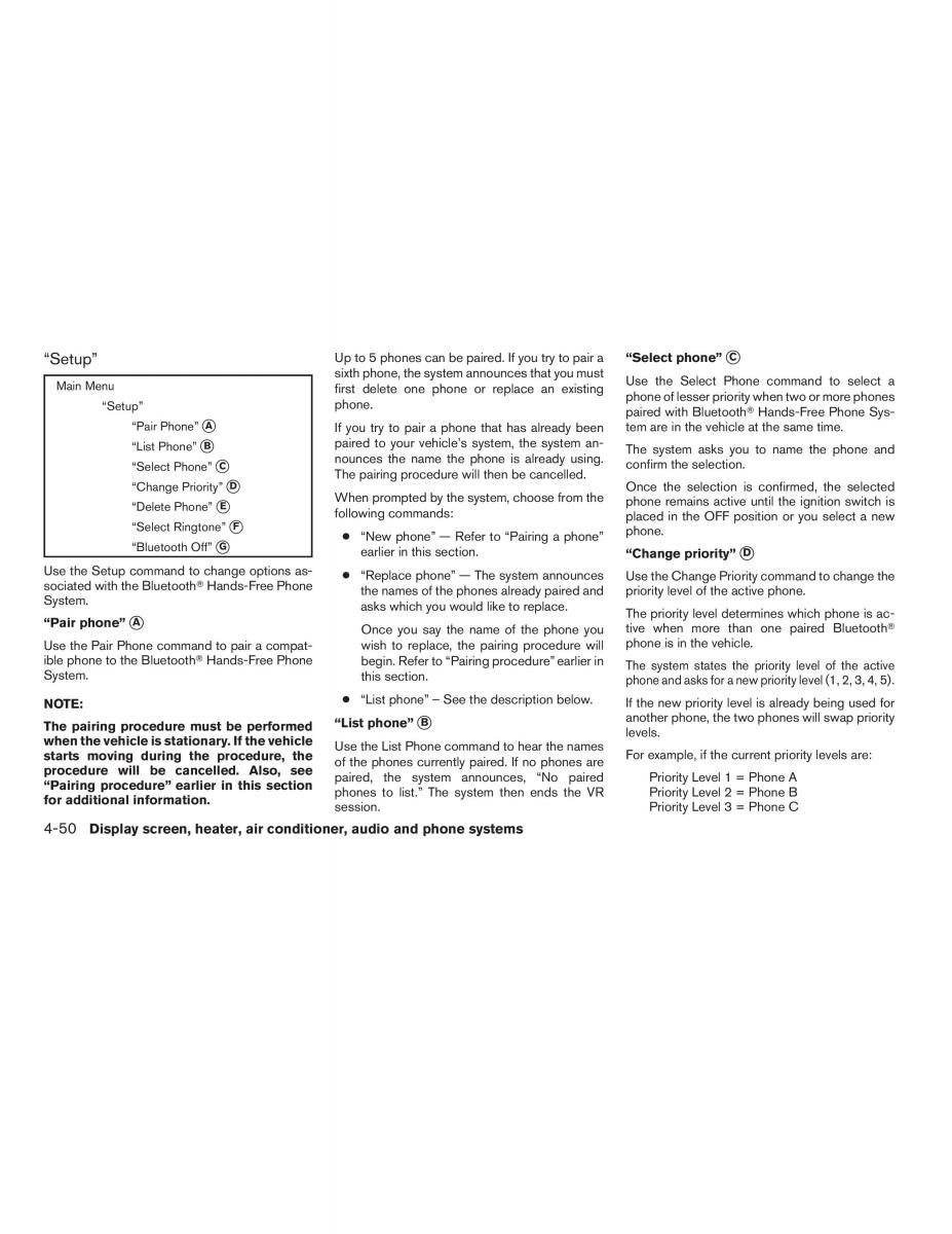procedure will be cancelled. Also, seepaired, the system announces, “No pairedPriority Level 1 = Phone A