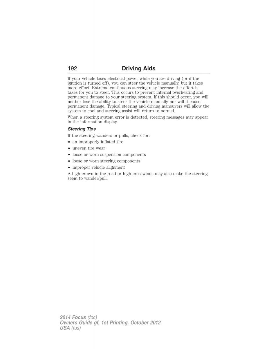 from owners manual to the vehicle Ford Focus, year of production 2010: