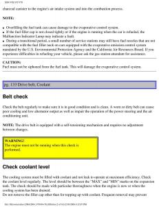 the coolant level regularly. The level should be between the "MAX" and "MIN" marks on the expansion