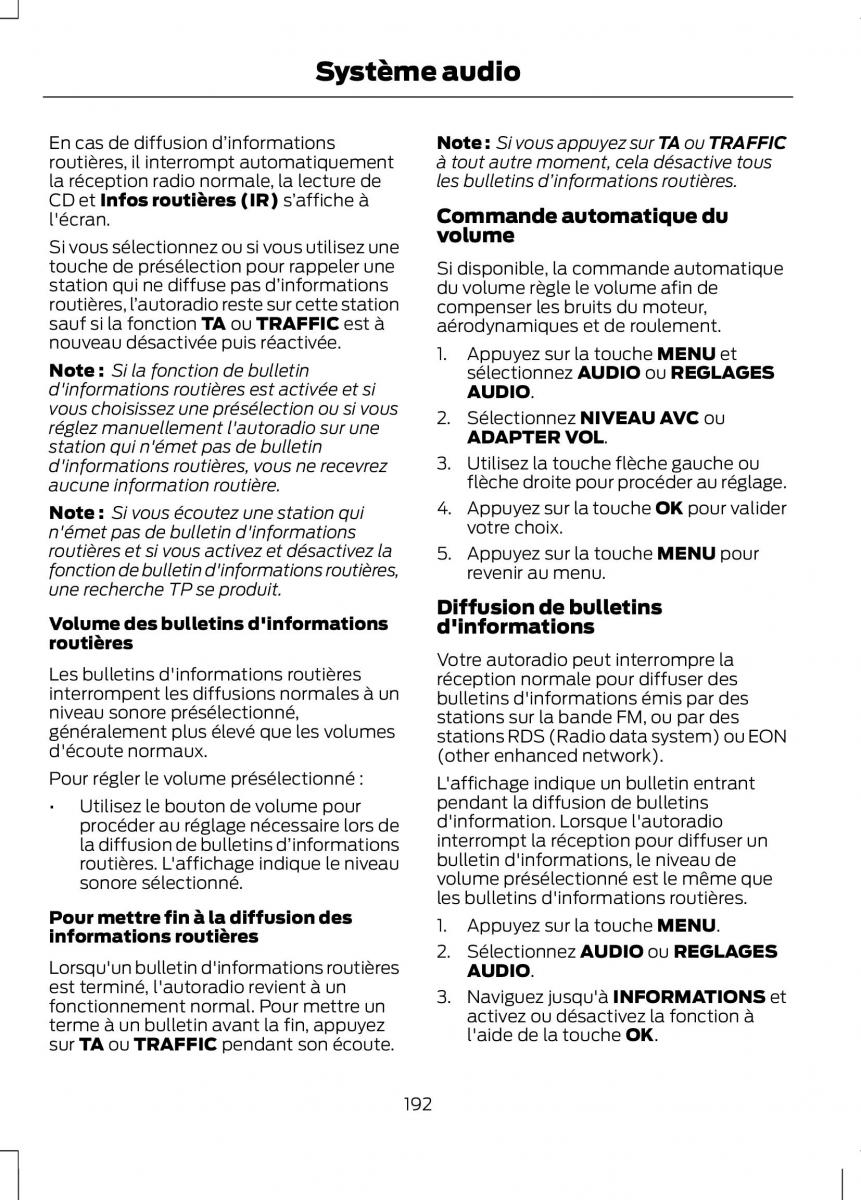 sur TA ou TRAFFIC pendant son écoute.l'aide de la touche OK.