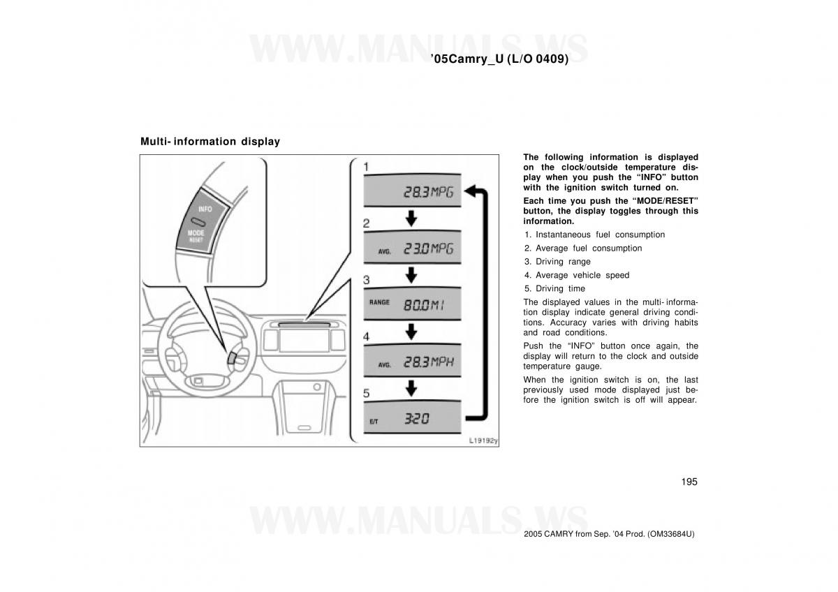 2005 CAMRY from Sep. ’04 Prod. (OM33684U)