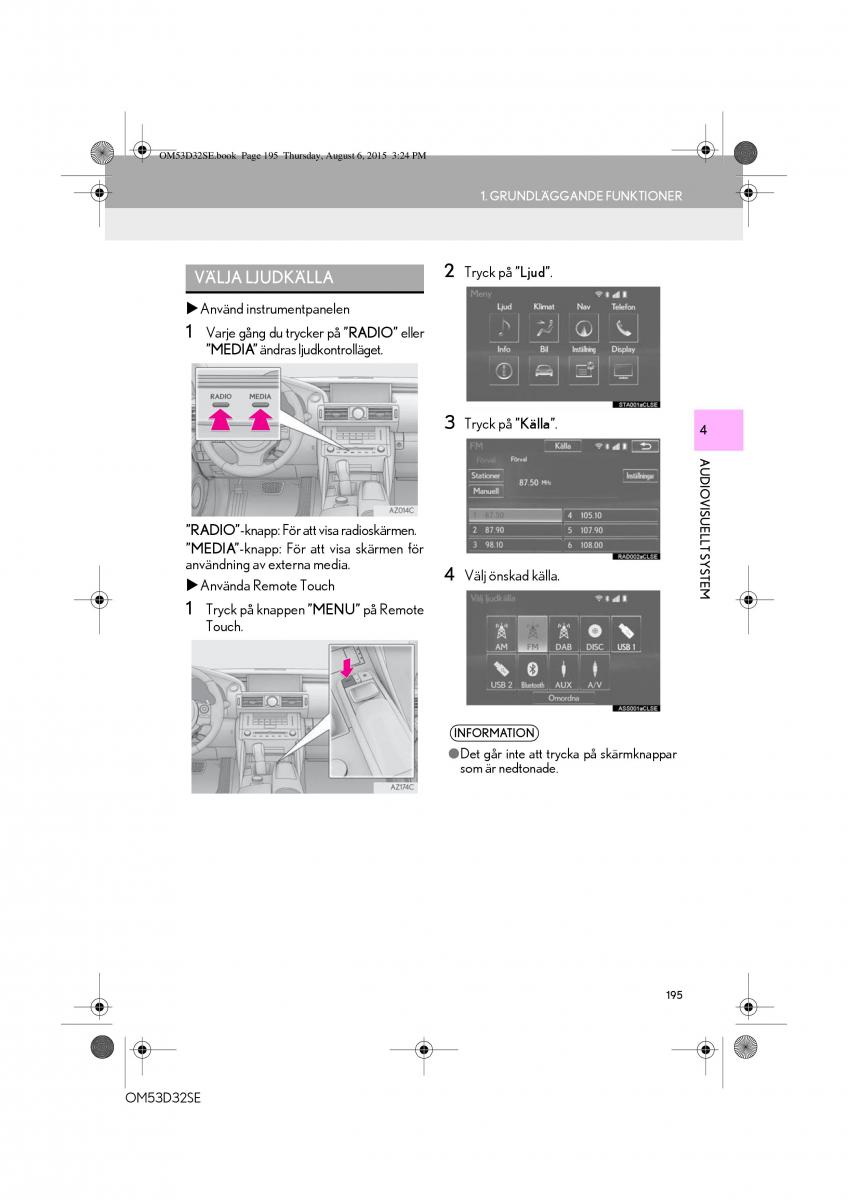 owners manual Lexus IS - year of production: 2013 - Lexus IS300h III 3 instruktionsbok SE