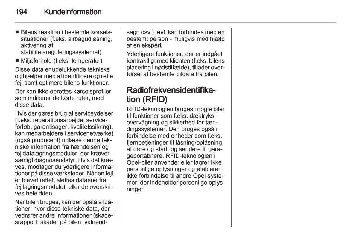 owners manual Opel Ampera - year of production: 2011, 2012, 2013, 2014 - Opel Ampera Bilens instruktionsbog DK