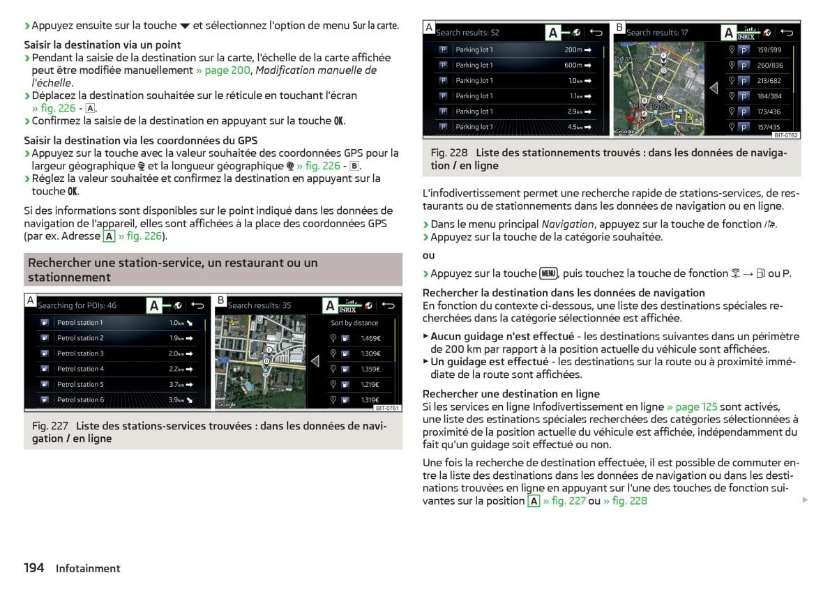 Appuyez sur la touche avec la valeur souhaitée des coordonnées GPS pour laFig. ėėĝ Liste des stationnements trouvés : dans les données de naviga-
