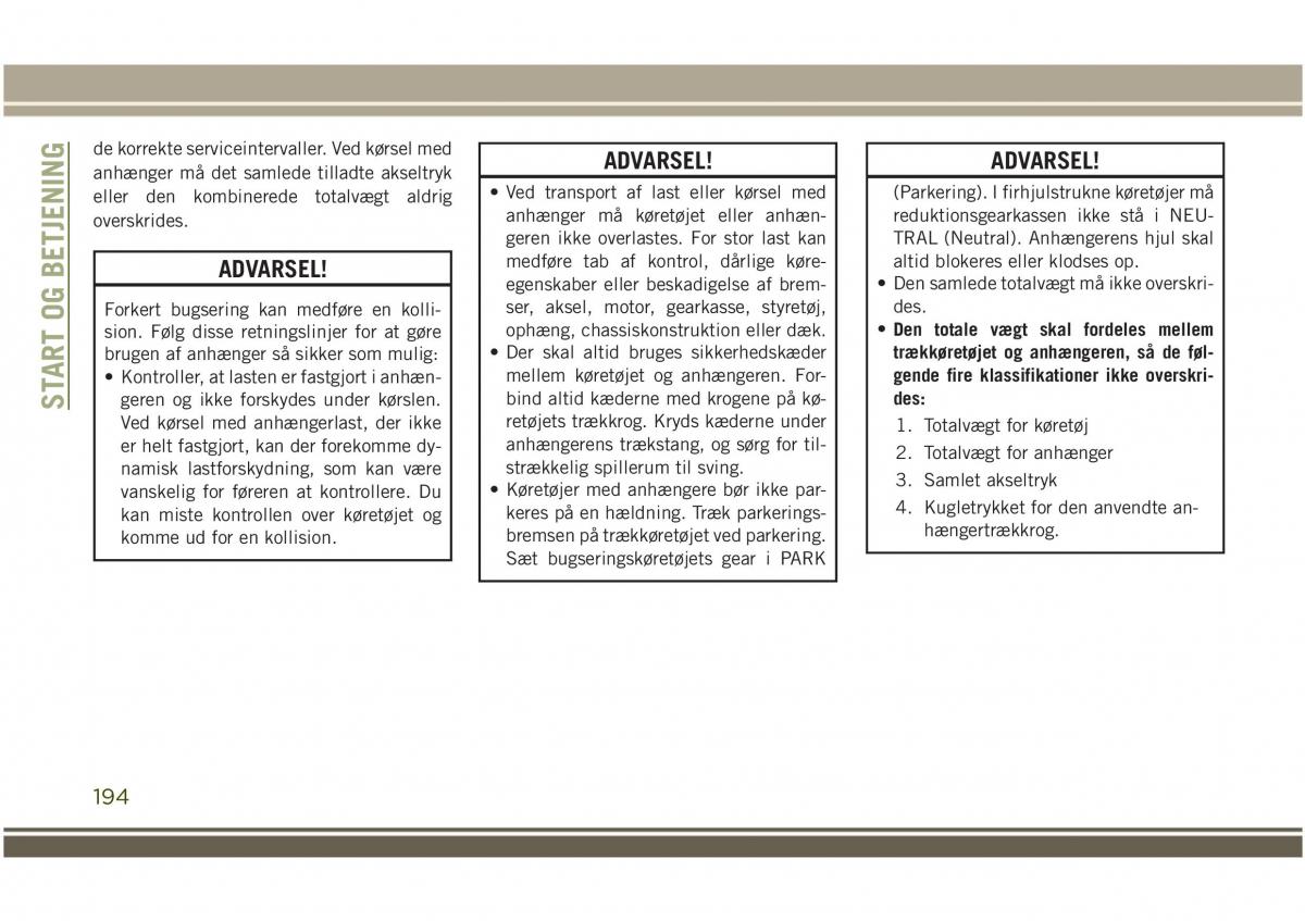 owners manual Jeep Compass - year of production: 2017 - Jeep Compass II 2 Bilens instruktionsbog DK