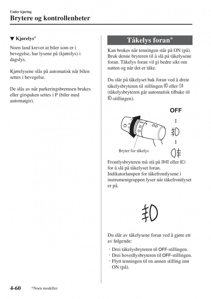bevegelse, har lysene på (kjørelys) i Bruk denne bryteren til å slå på tåkelysene