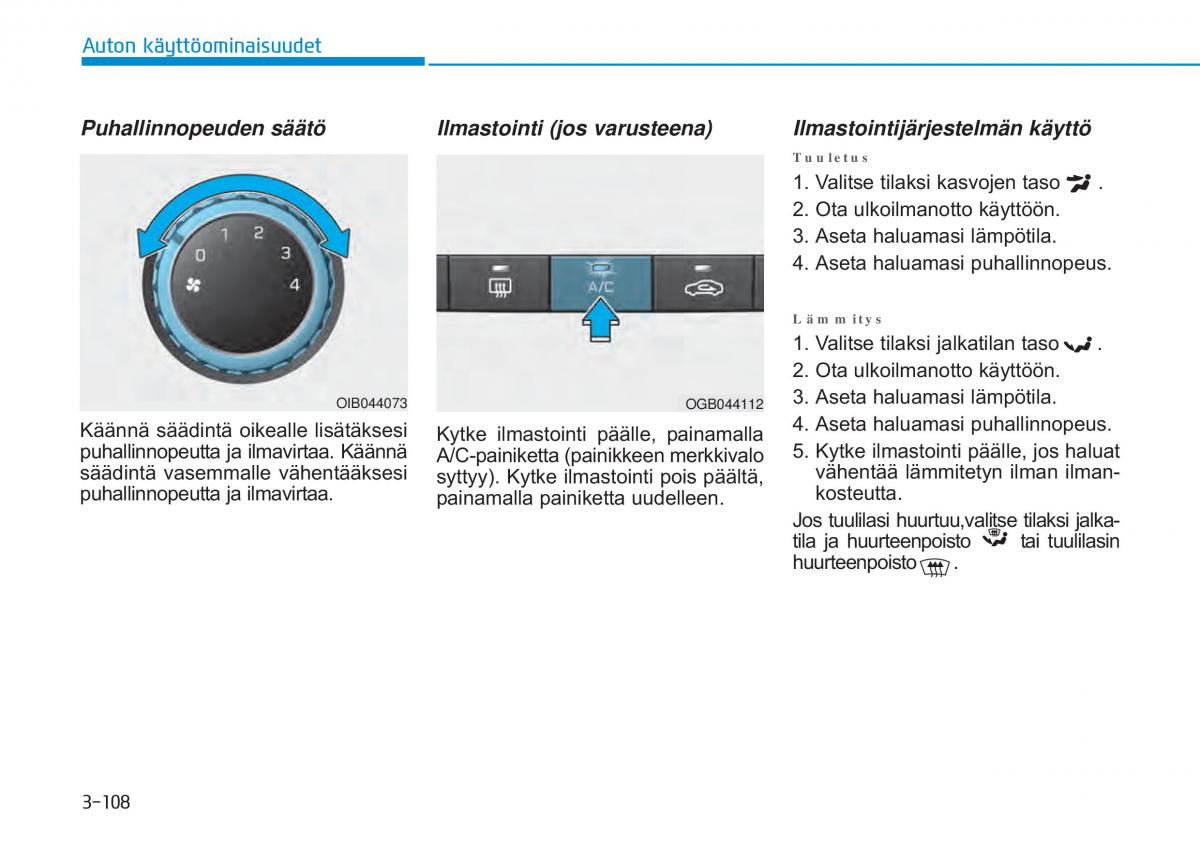 Puhallinnopeuden säätö Ilmastointi (jos varusteena) Ilmastointijärjestelmän käyttö