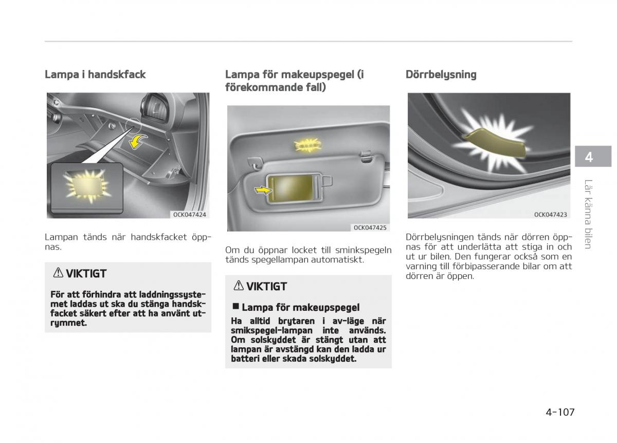 Lampan t䜮nds n䜮r handskfacket öpp‐ Dörrbelysningen t䜮nds n䜮r dörren öpp‐